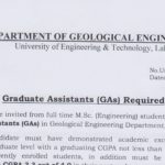 University of Engineering and Technology (UET) Lahore Graduate Assistants (GAs) required at Department of Geological Engineering. … [Read more...] about UET Lahore Graduate Assistant required at Department of Geological Engineering