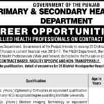 Government of the Punjab Primary & Secondary Healthcare Department Allied Health Professional (NTS Screening Test) To Download Advertisement : Click Here To Download Application Form : Click Here Last Date For Application Submission: Monday, 6th March 2017 Test Date: Will be Announced Soon … [Read more...] about Allied Health Professional (NTS Screening Test) 2017